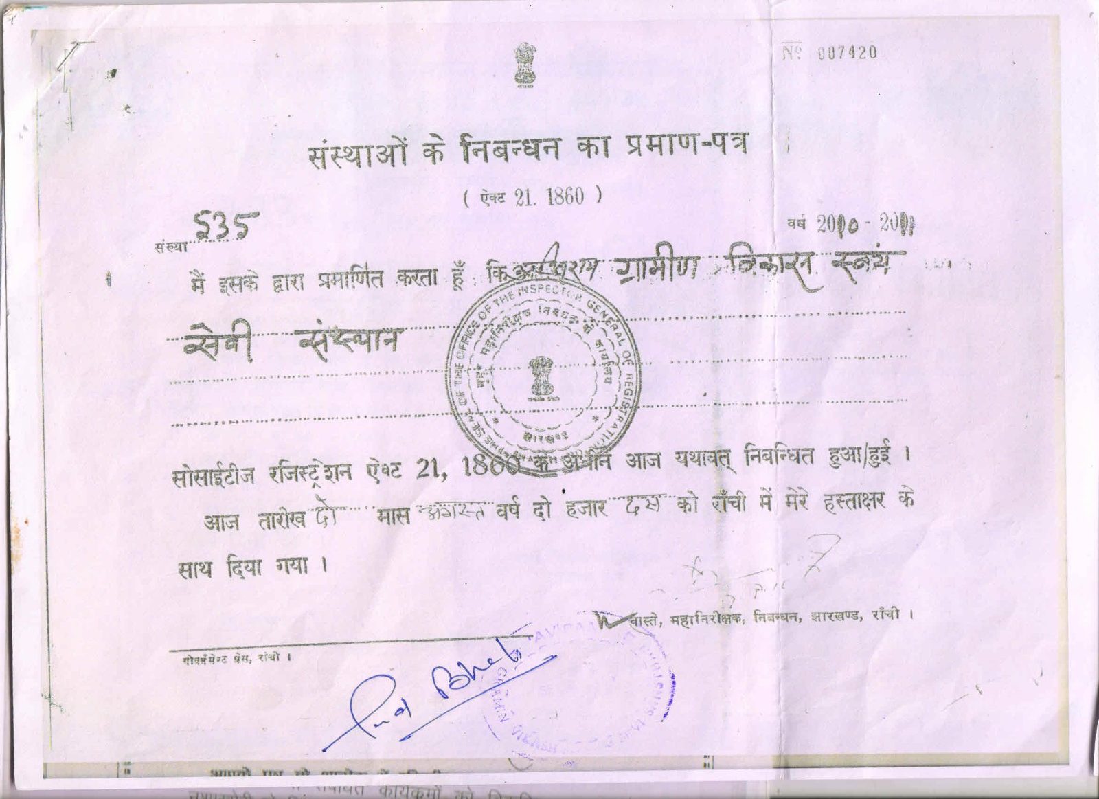 No Objection certificate (NOC) issued by the state Govt